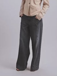 Step up your style with these black washed wide-leg jeans, featuring a high-rise fit and seam details running down the front for a cool, worn-in look. Finished with a wide bottom hem, these jeans pair perfectly with a tucked-in statement tee and an oversized blazer for an effortlessly chic ensemble.
